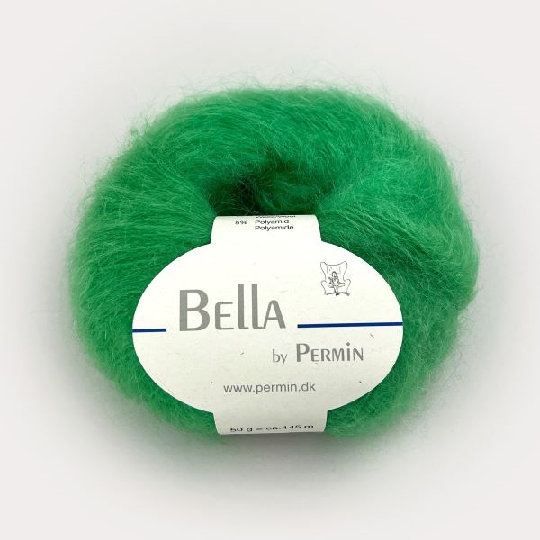 Bella by Permin er en klassisk kid mohair med uld og giver et karakteristisk langhåret mohair udtryk. Kid mohair er desuden en meget let og varm fiber, der egner sig særligt godt til store sweatre og kjoler, fordi den holder et let og luftigt udtryk selv i et stort arbejde.