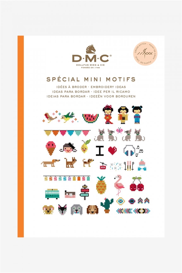 Hæftet er fyldt af mini mønstre til fri fantasi i korssting eller Petit-point alt efter temperament. Du finder mønstre til fine korssstingsborter, bogstaver til f.eks. navnemærkning eller mini motiver i alle størrelser. Hvert mønster er forsynet med et forslag til farver i tråden DMC Mouline (Amagergarn), men du kan sagtens bruge andre broderitråde som f.eks. Dansk Blomstergarn.