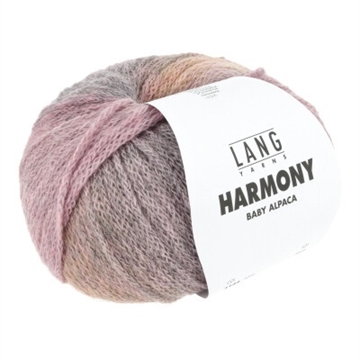 HARMONY imponerer over hele linjen med blide, harmoniske farvegradienter og en blød blanding af baby alpaca, beriget med 15% polyamid til forstærkning. Konstrueret som et maske-spundet garn er længden generøs i forhold til vægten, hvilket resulterer i let men varm strik.