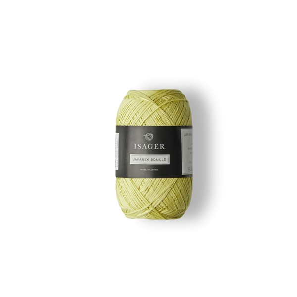 Japansk Bomuld fra Isager er med sin smukke båndstruktur et spændende supplement til de øvrige garner. Umiddelbart virker garnet hårdt og papiragtigt, men det er 100 % Bomuld og bliver blødere i vask. Garnet giver en rigtig fin struktur i sammenstrikning med andre garner både som striber eller som del af en tråd. Isager bruger gerne garnet i ensfarvede sommertoppe, men det er også rigtig fint i striber sammen med Bomulin. Garnet er spundet og farvet i Japan.