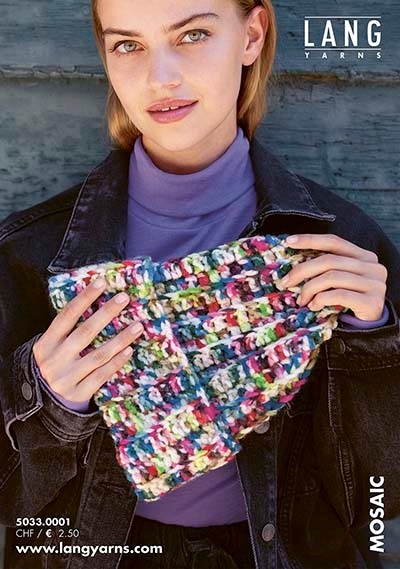 Folder med to opskrifter i en strikket og en hæklet. Mosaik garnet har med sin hvide grundtone og korte, livlige farveaccenter en evne til at begejstrer strikkere, der elsker farver, og dem, der foretrækker et mere afdæmpet udtryk.