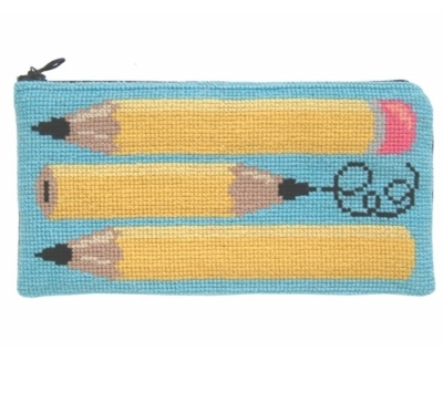 Et rigtig sjovt lille penalhus broderi med 3 gule blyanter tegnet af Pelse Asboe.