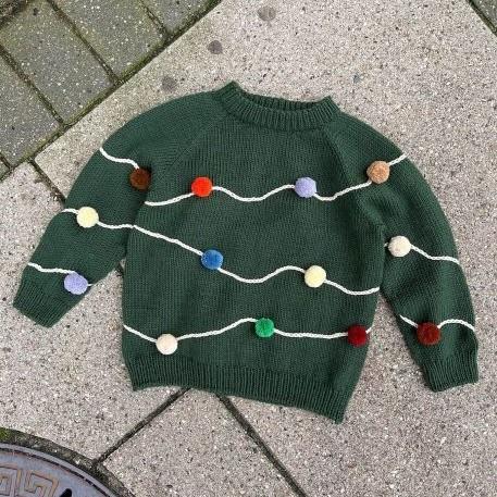 PetiteKnits Let¨s Christmas Sweater opskrift passer til børn i alderen 1-14 år. Julesweateren strikkes oppefra og ned i glatstrik. Halsen ombukkes og strikkes ned. Trøjen har raglanudtagninger på bærestykket. Til sidst hækles der kædemasker, og der monteres Pom-pon'er i forskellige farver.