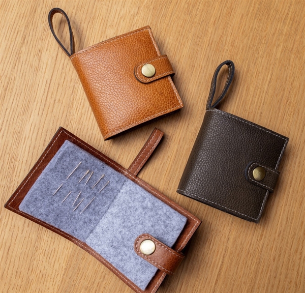 P076 NÅLEBOG fra RE-DESIGNED er en lækker læder nålebog til opbevaring af dine synåle.  Den kraftig filt holder orden på synålene. Lukkes med tryklås. Når du åbner nålebogen har du et nemt overblik over dine synåle. Nålebogen er lavet af læder udvendigt og kraftig filt indvendig. Lille og praktisk.